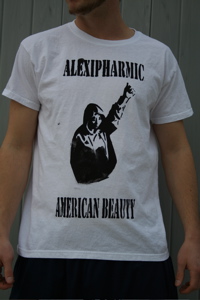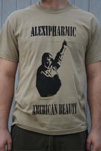 These were the absolute FIRST Alexipharmic shirts ever made. Each shirt is handpainted with textile medium and fabric paint, using a stencil hand carved and designed by J.C. Del Barco.
