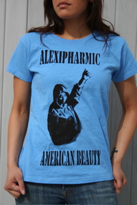 These were the absolute FIRST Alexipharmic shirts ever made. Each shirt is handpainted with textile medium and fabric paint, using a stencil hand carved and designed by J.C. Del Barco.